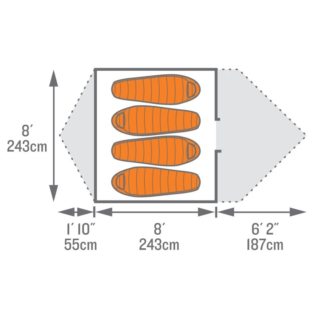 Featuring a large double door for easy access the tents main feature is its huge Vestibule which provides a perfect area to store all of your camping supplies and comes with duel entry mesh doors for ease.