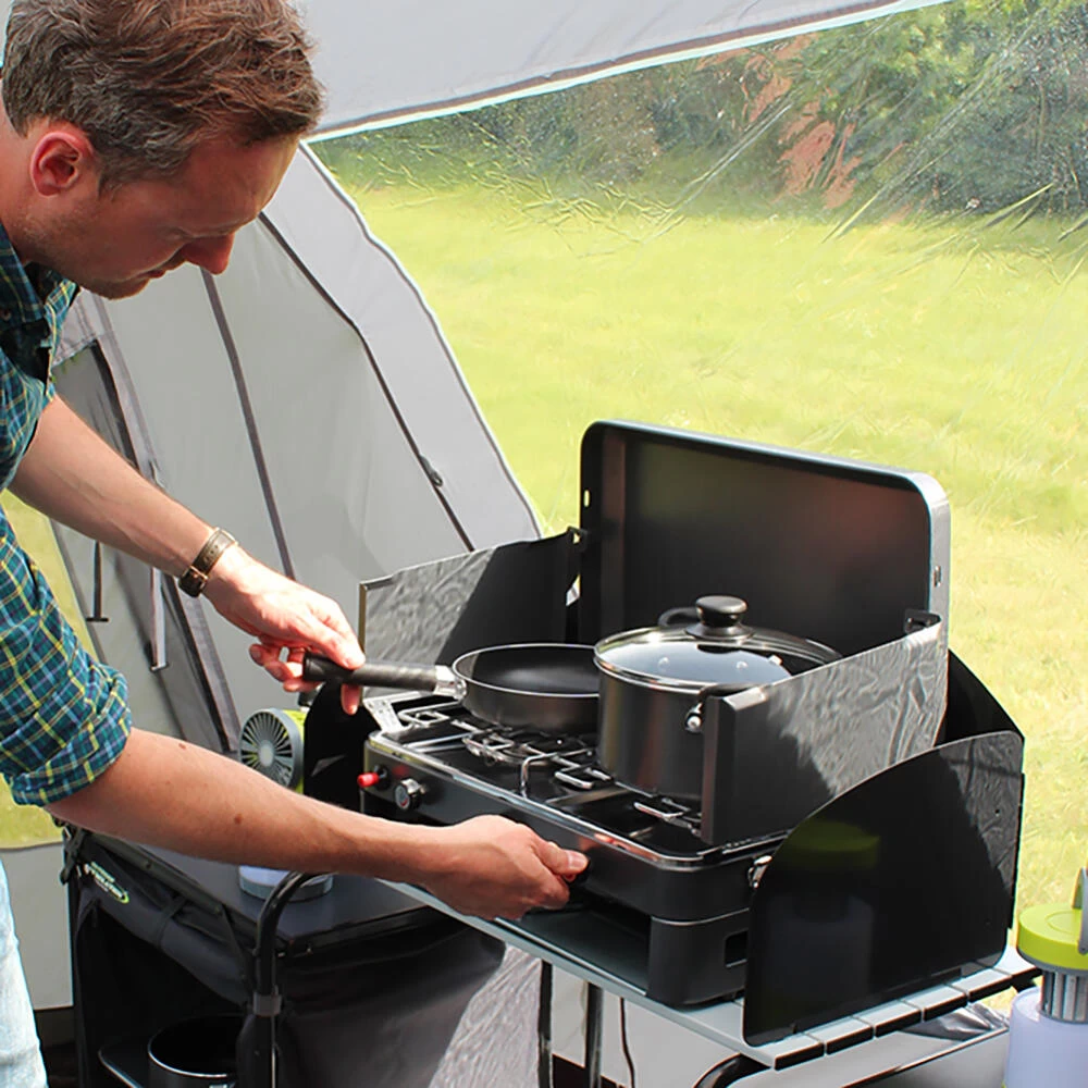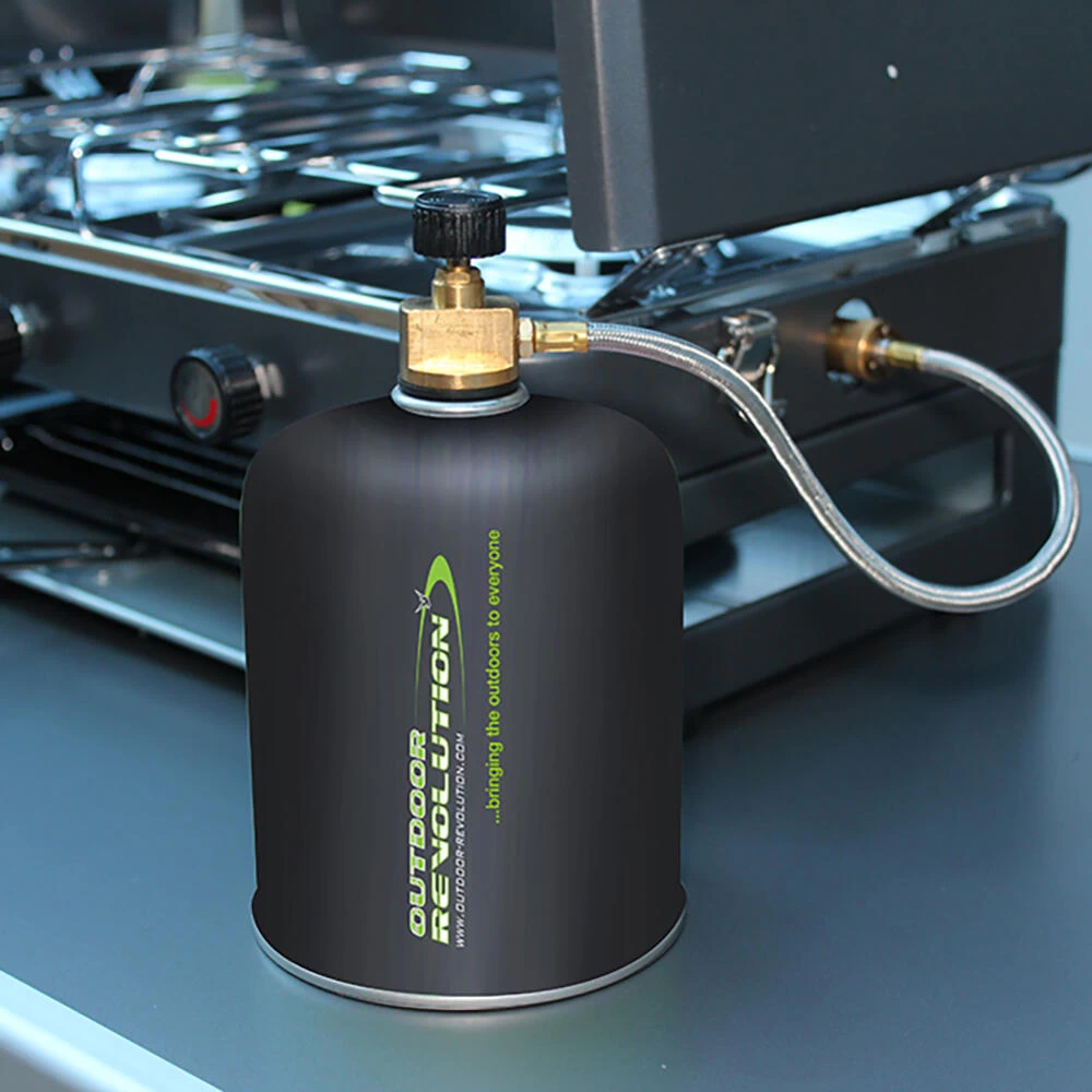 This Twin Burner Gas Stove and Grill offers the perfect blend of high performance with compactness and style. Thanks to the braided hose with control valve which takes a Butane Propane screw fitting resealable gas canister, there is no need to use a separate hose and regulator with a refillable gas cylinder, which cuts down on space and weight during transportation. This is the only Twin Burner we know of in the market currently that has 2 burners and a grill that takes this type of high-power gas canister. You only pay for the gas you need to use when you are away whether it be for a weekend or an extended trip. Each 450g gas cannister (supplied separately) will run all the burners on full power for around 60 minutes, and the powerful 3kW burner will boil a litre of cold water in 7 minutes. Total Weight 6Kg • Twin burners: 2 x 3 kW