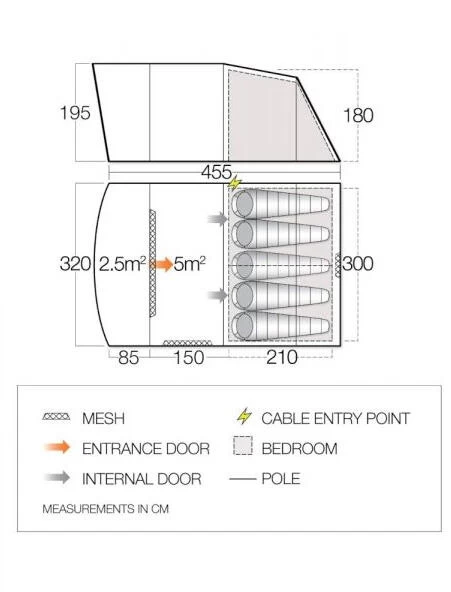 The Vango Harris 500 is a 5-man poled tent designed with a focus on ventilation.